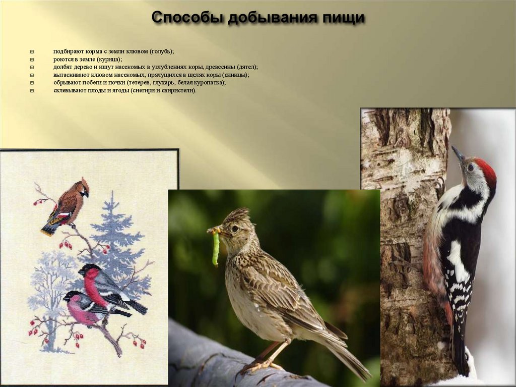 Способы добывания пищиподбирают корма с земли клювом (голубь);