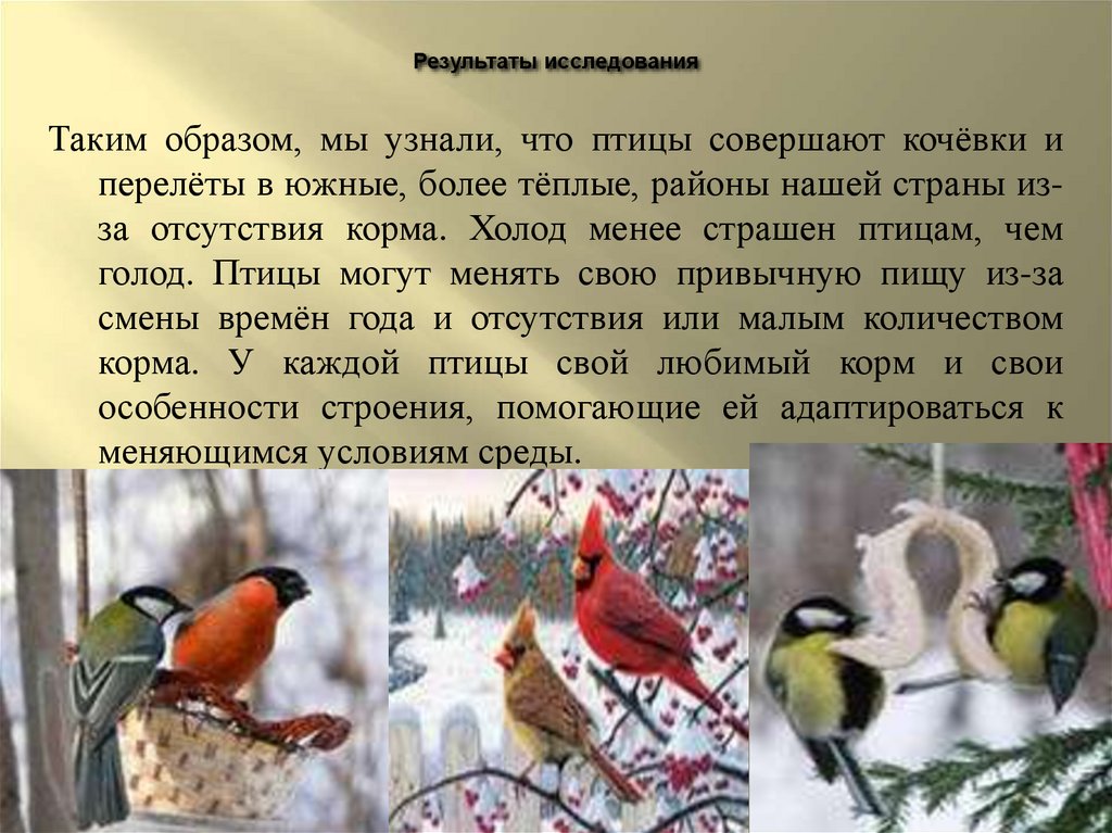 Результаты исследованияТаким образом, мы узнали, что птицы совершают кочёвки и