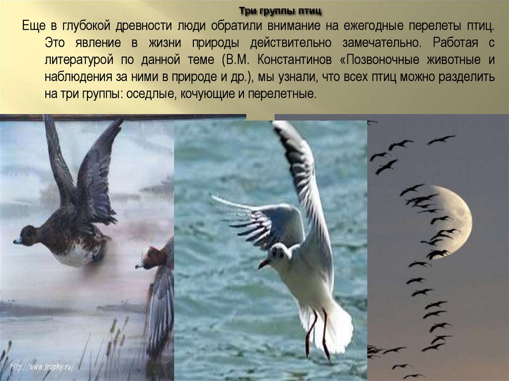 Три группы птицЕще в глубокой древности люди обратили внимание на ежегодные перелеты птиц.