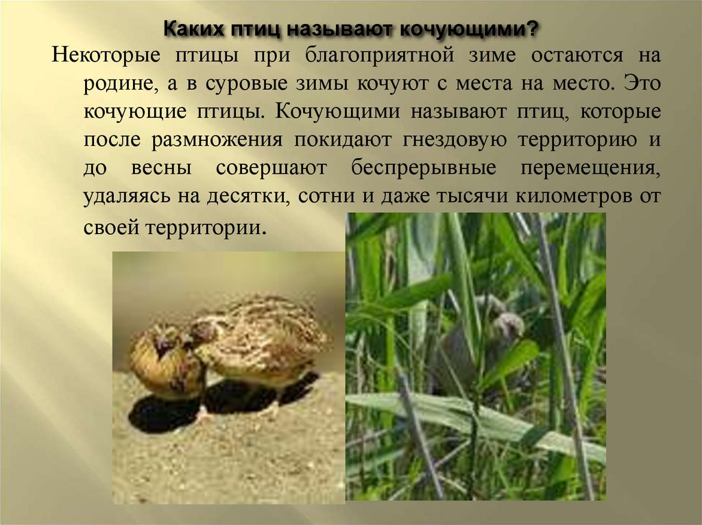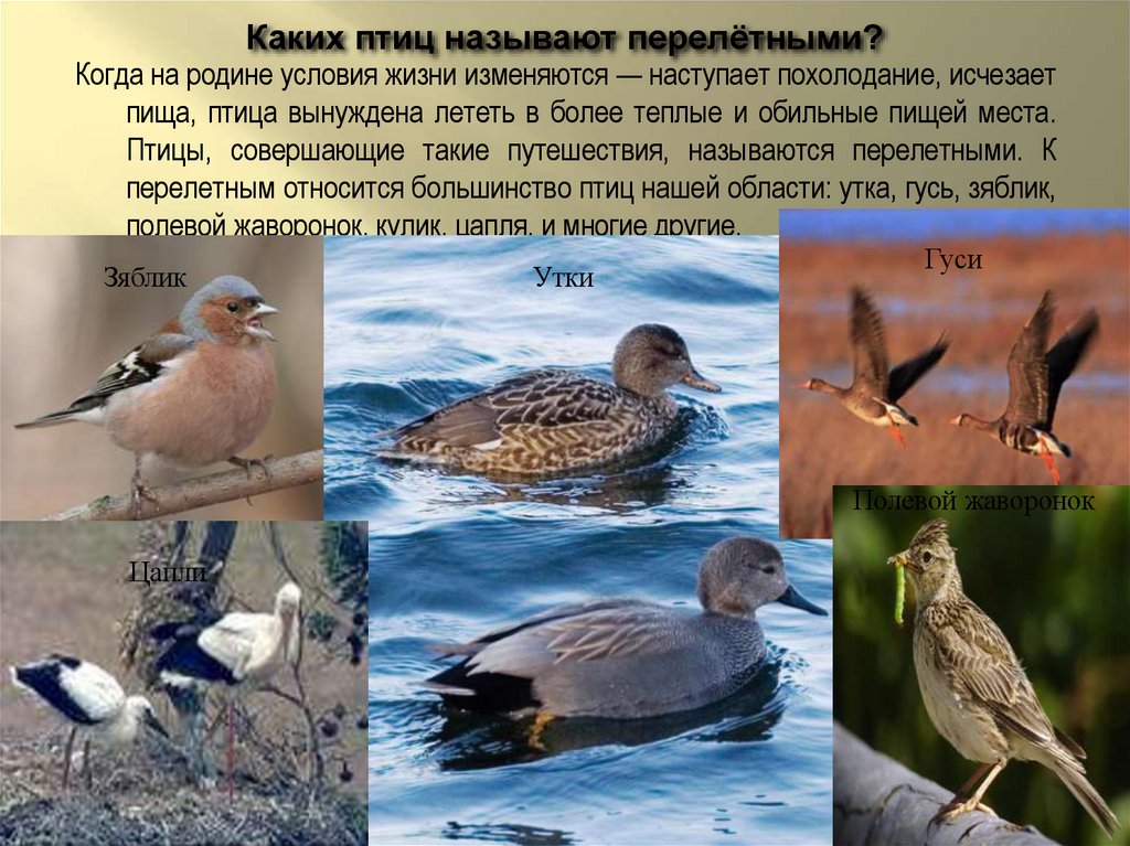 Каких птиц называют перелётными?Когда на родине условия жизни изменяются — наступает похолодание, исчезает