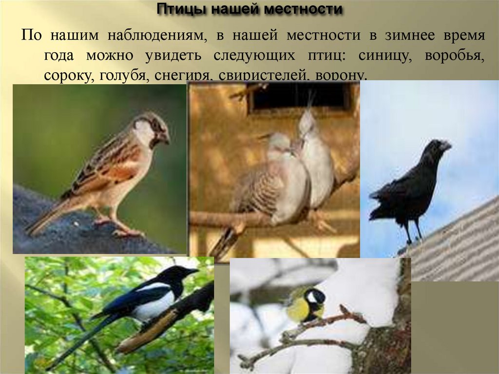 Птицы нашей местностиПо нашим наблюдениям, в нашей местности в зимнее время