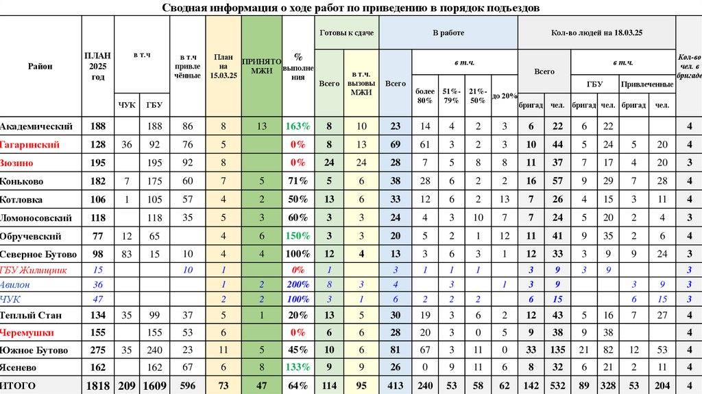 Сводная информация о ходе работ по приведению в порядок подъездовВ работе