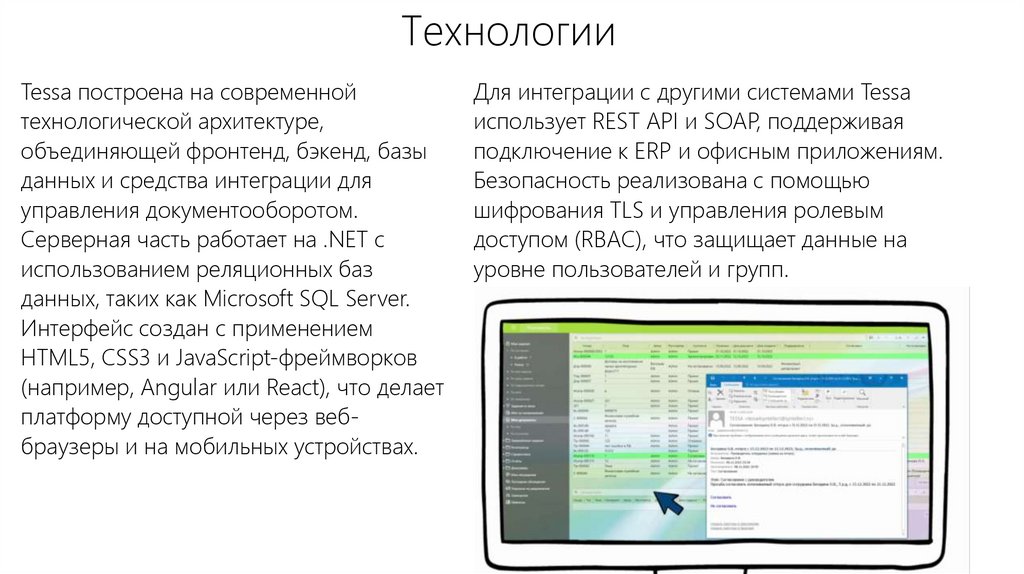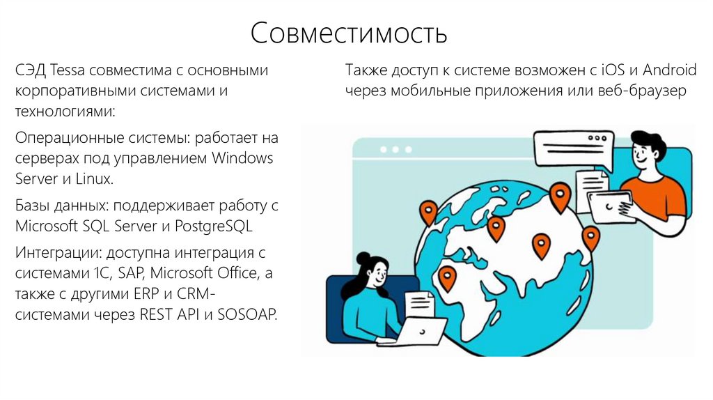 СЭД Tessa совместима с основнымикорпоративными системами и