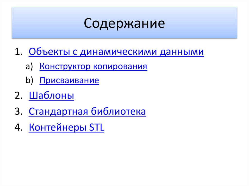 Содержание1. Объекты с динамическими данными