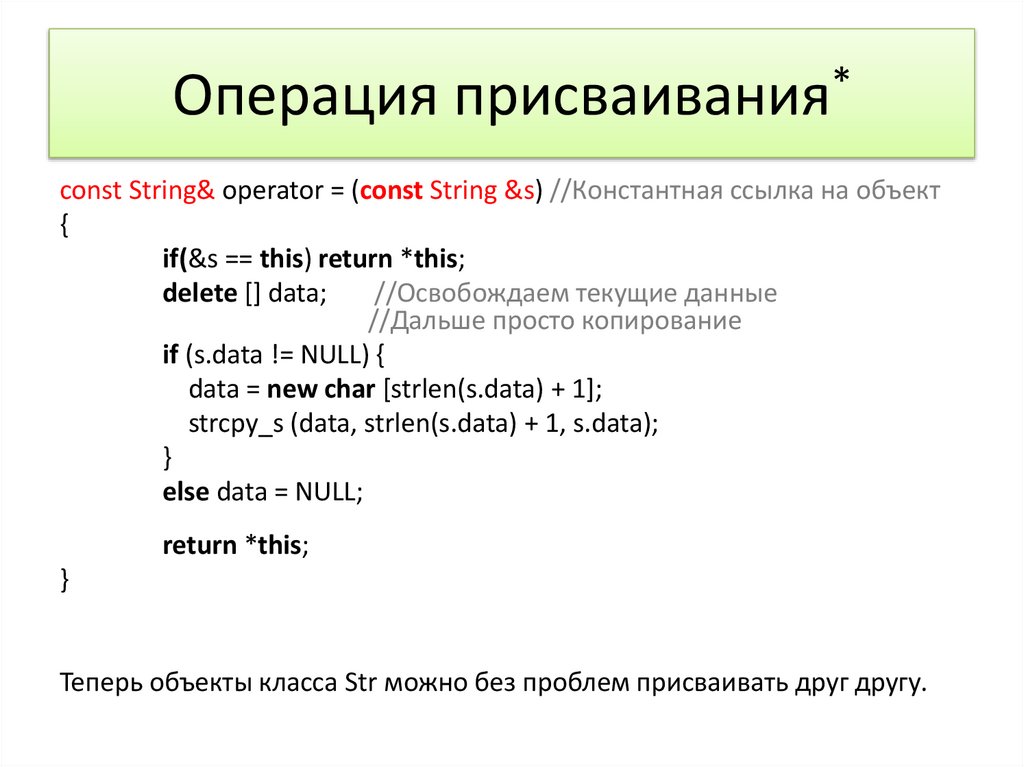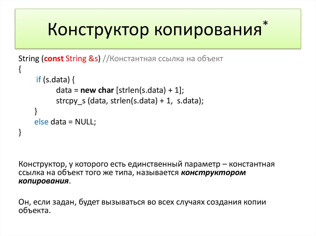 Конструктор копирования*String (const String &s) //Константная ссылка на объект