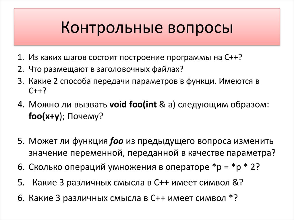 Контрольные вопросы1. Из каких шагов состоит построение программы на C++?