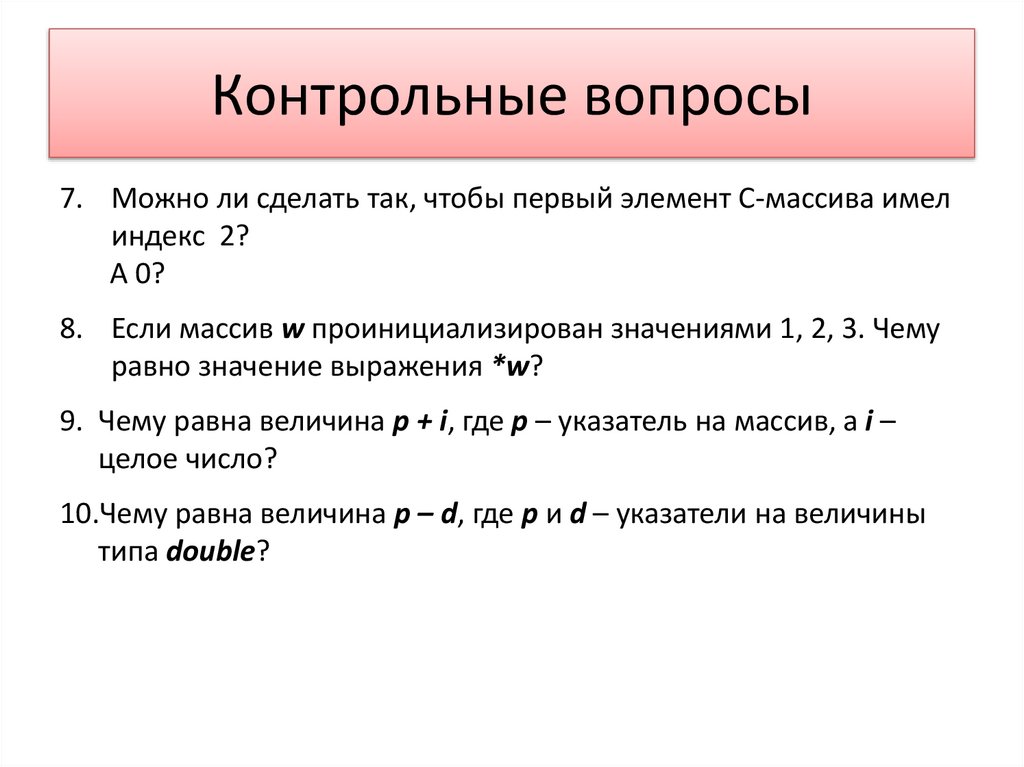 Контрольные вопросы7. Можно ли сделать так, чтобы первый элемент C-массива имел