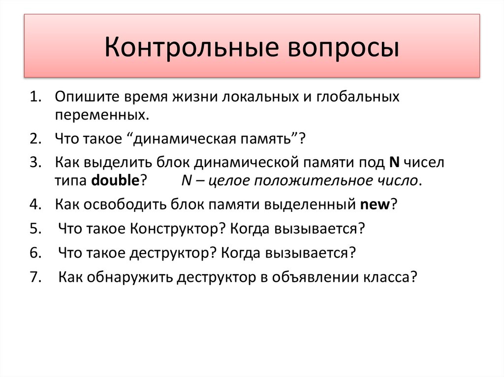 Контрольные вопросы1. Опишите время жизни локальных и глобальных