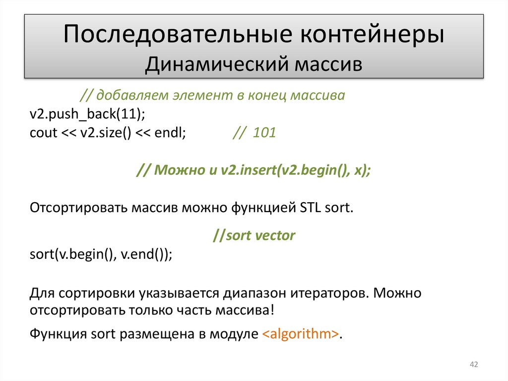 В частности, метод sort, который применялся для вектора,