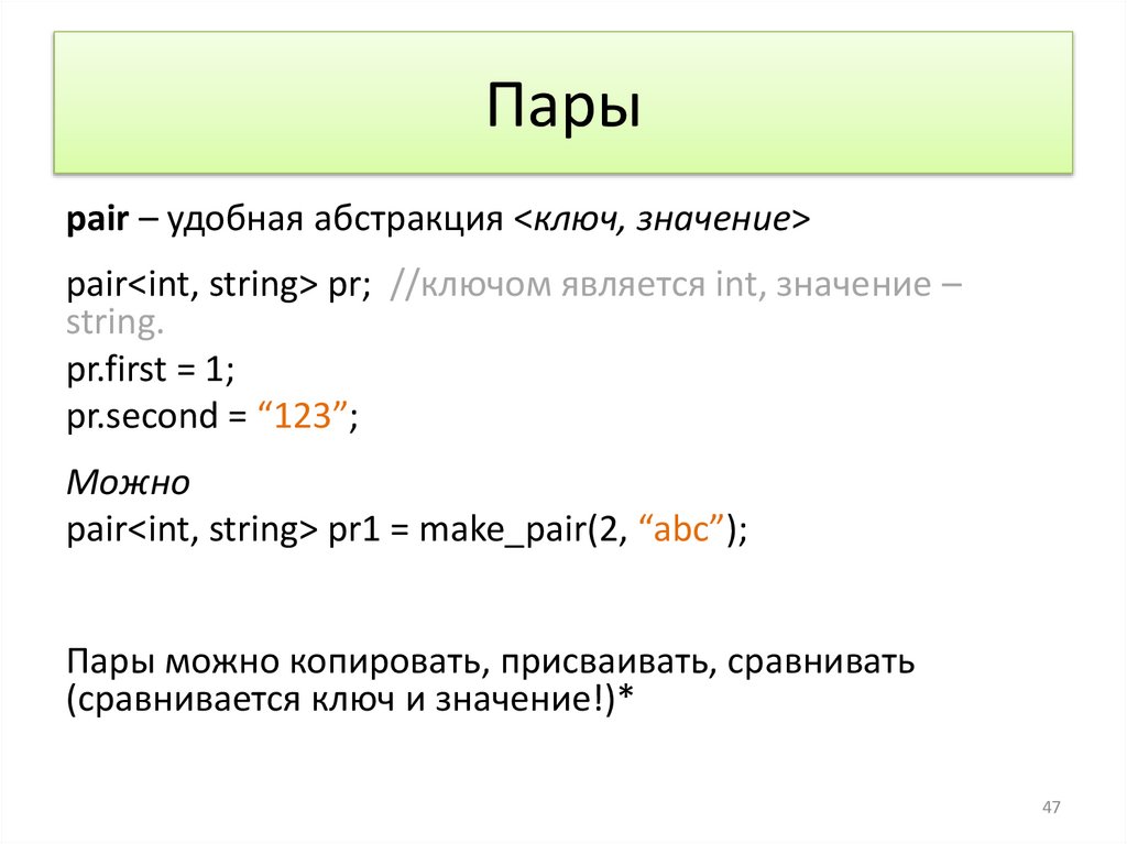 //подготовили множество пар <целое - строка>