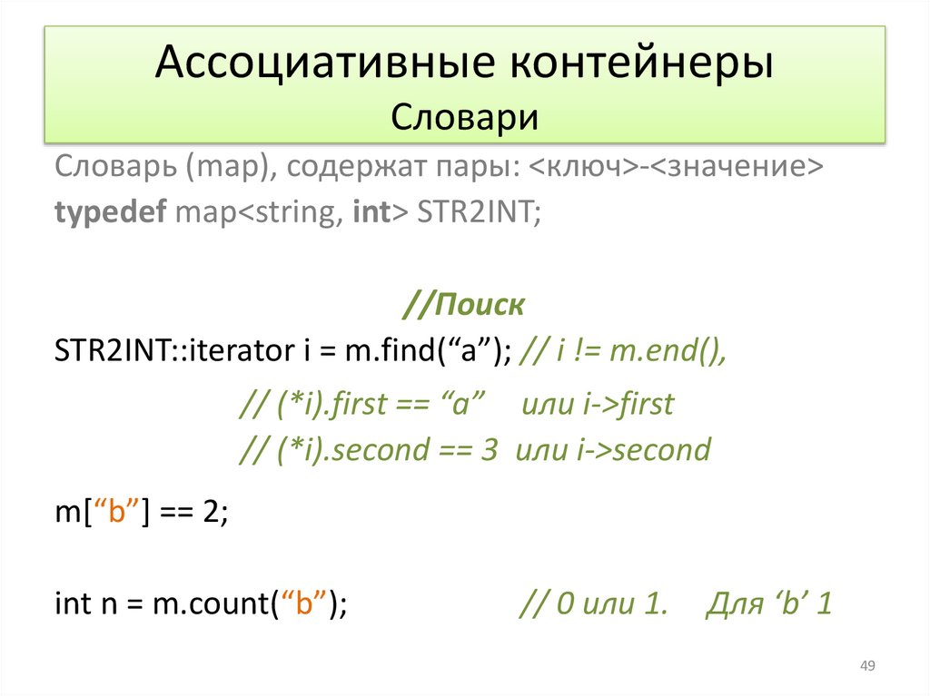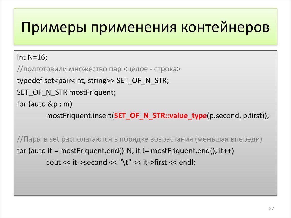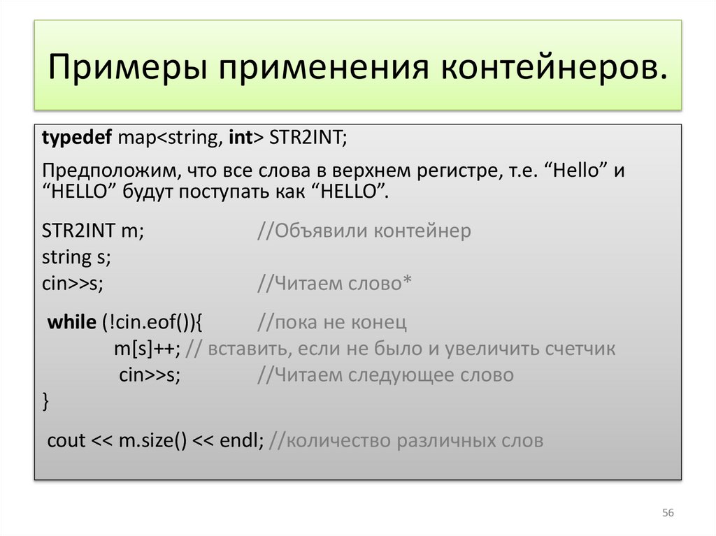 Примеры применения контейнеров.typedef map<string, int> STR2INT;
