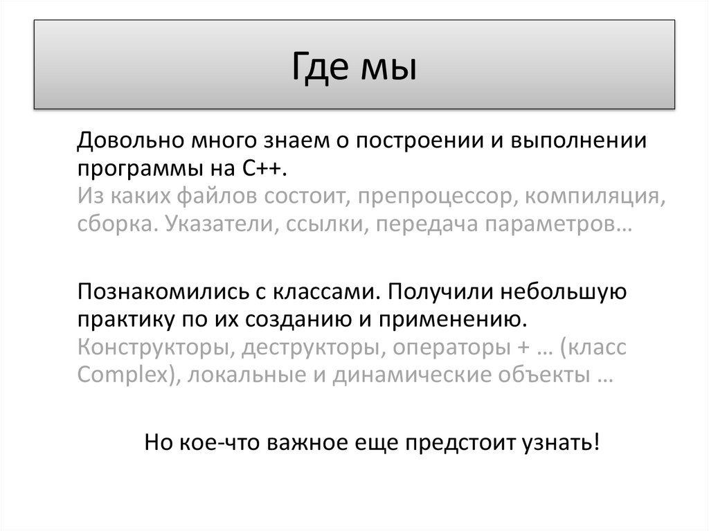 Где мыДовольно много знаем о построении и выполнении