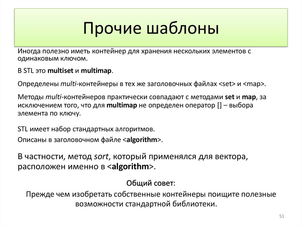 Методы multi-контейнеров практически совпадают с методами set и map, за