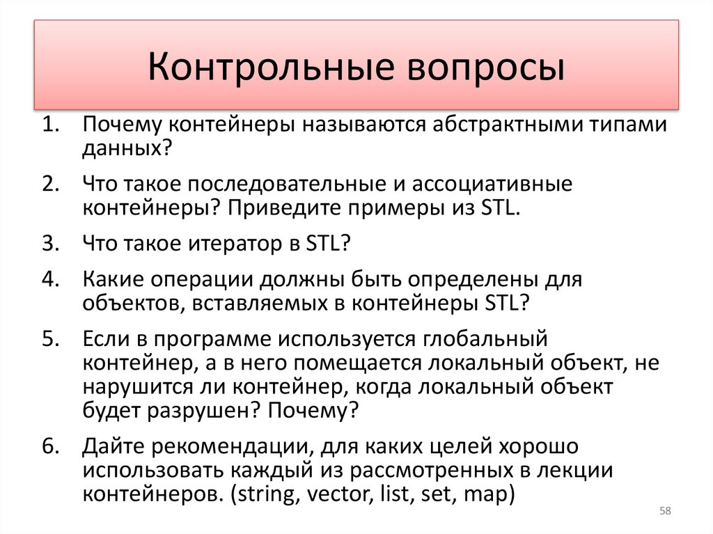 Контрольные вопросы1. Почему контейнеры называются абстрактными типами