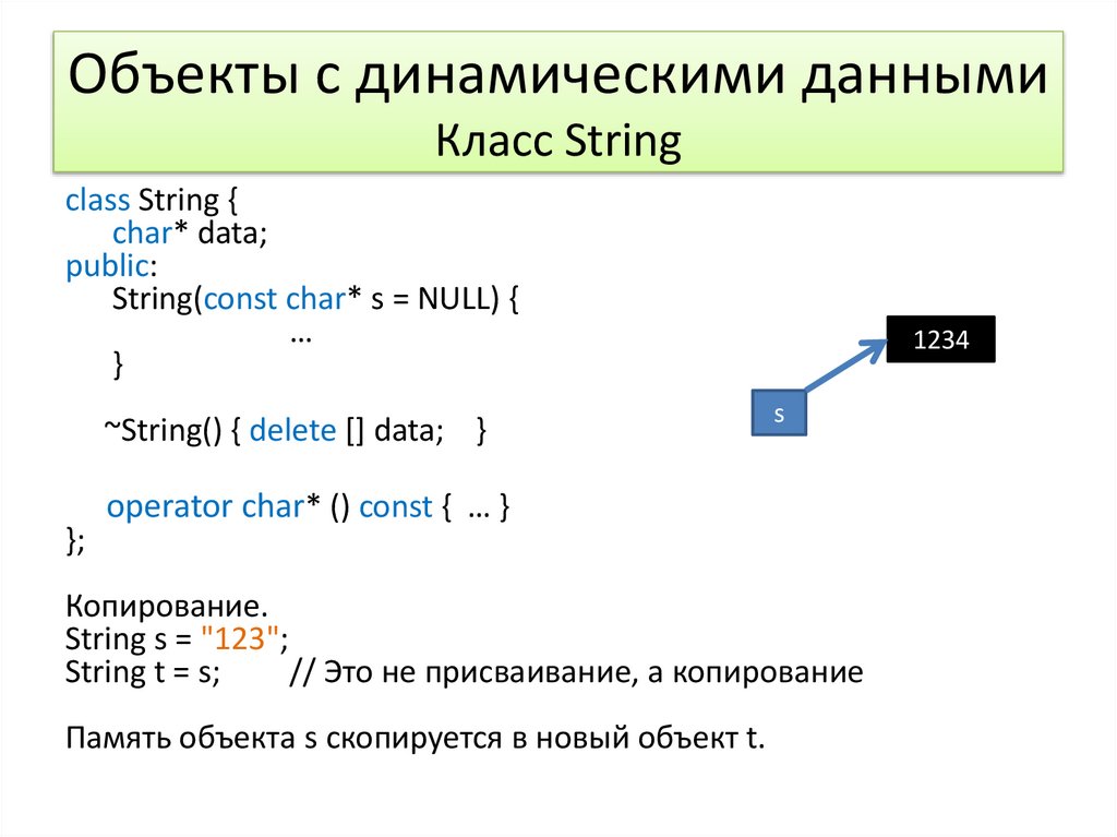 Объекты с динамическими даннымиКласс String