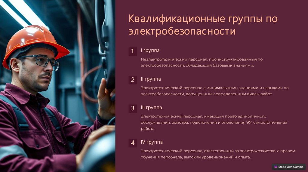 электробезопасности, обладающий базовыми знаниями.