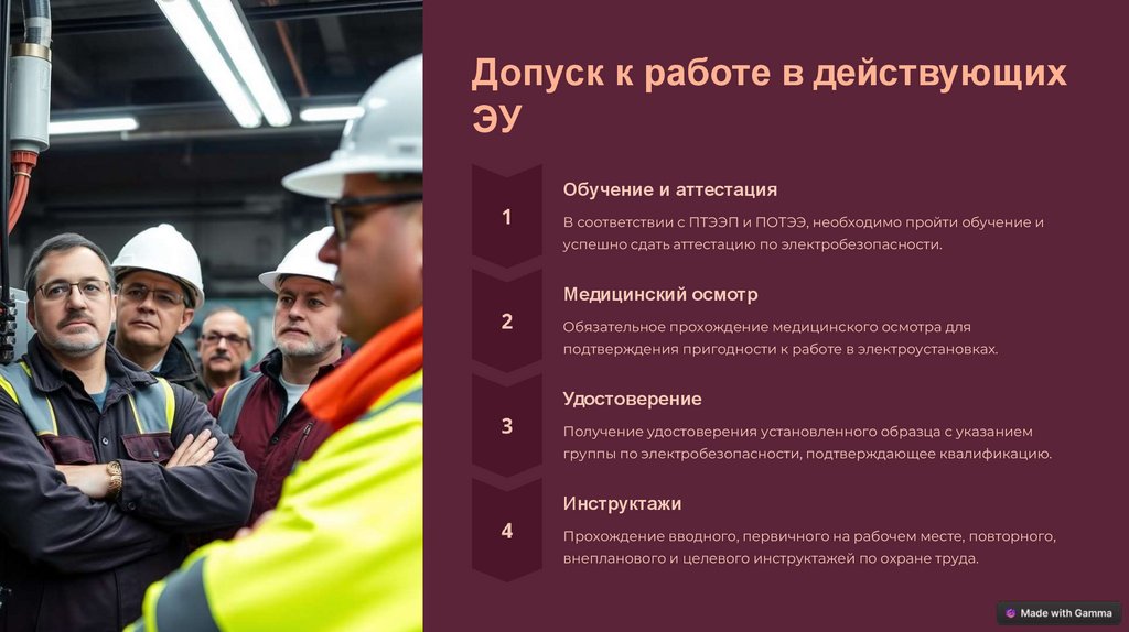 Допуск к работе в действующихЭУ