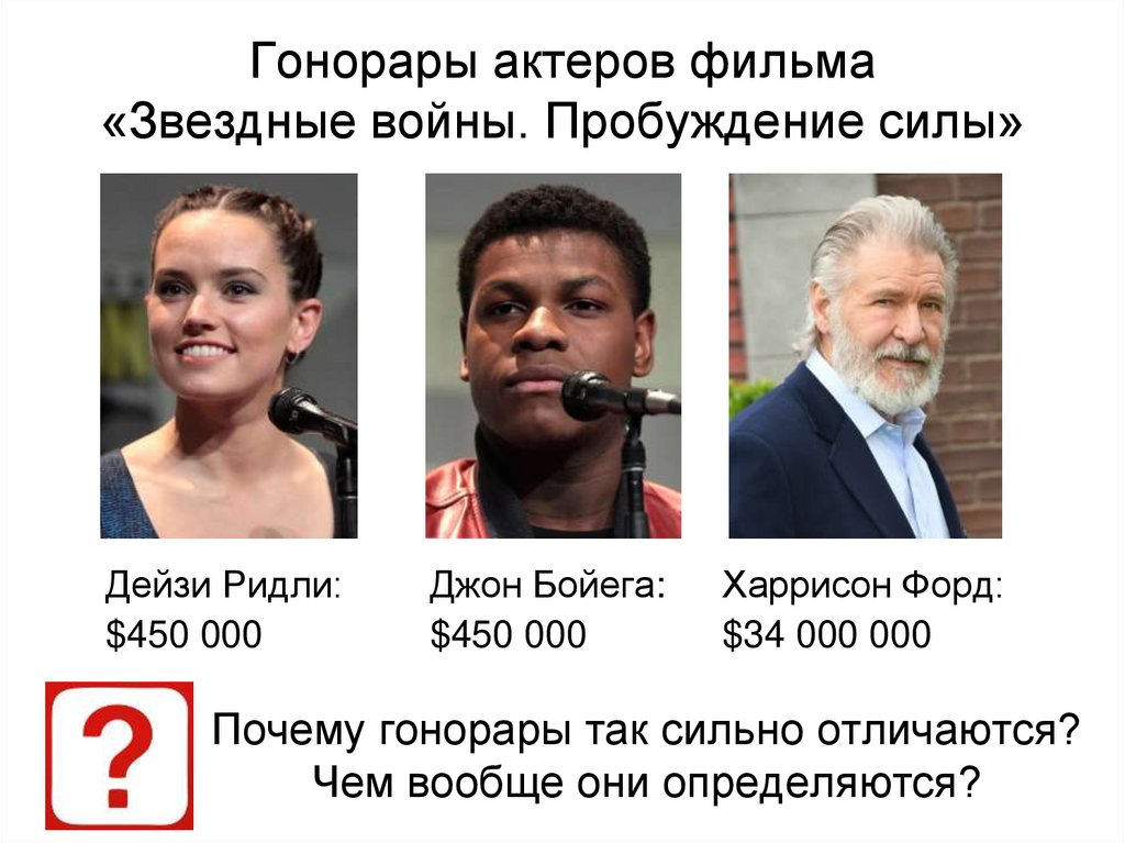 Гонорары актеров фильма«Звездные войны. Пробуждение силы»