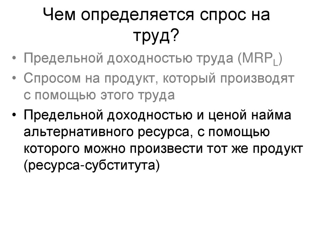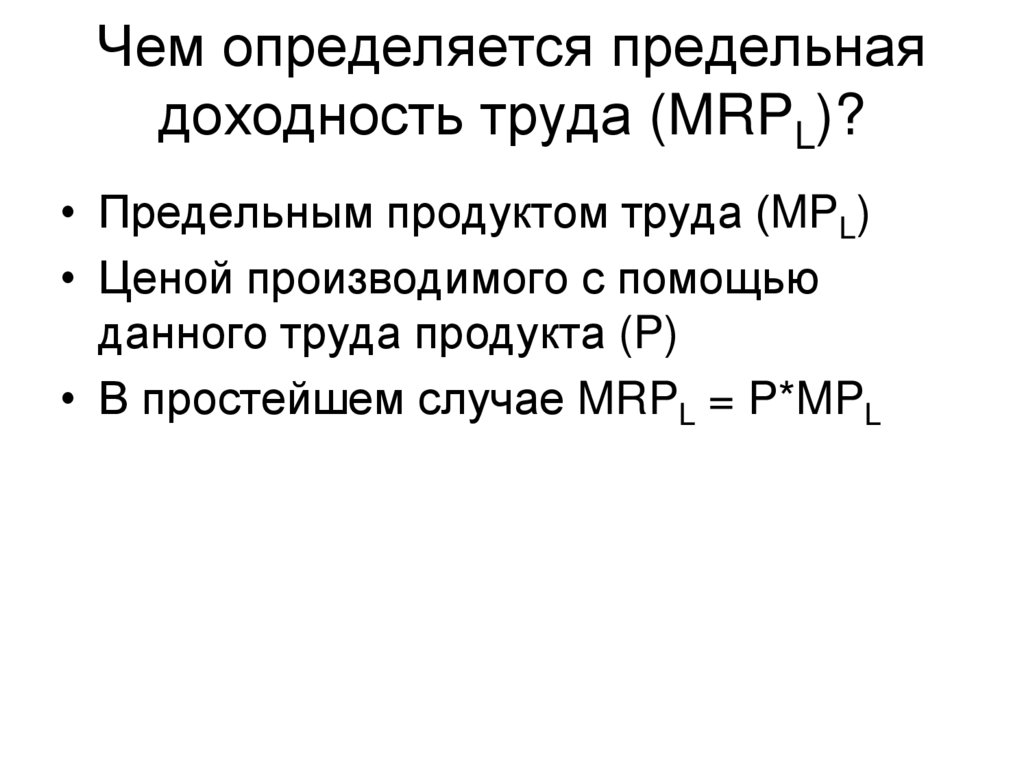 • Предельной доходностью труда (MRPL)