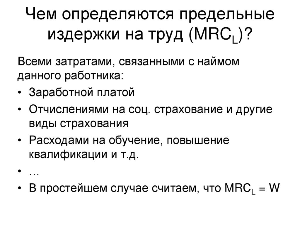Чем определяются предельныеиздержки на труд (MRCL)?