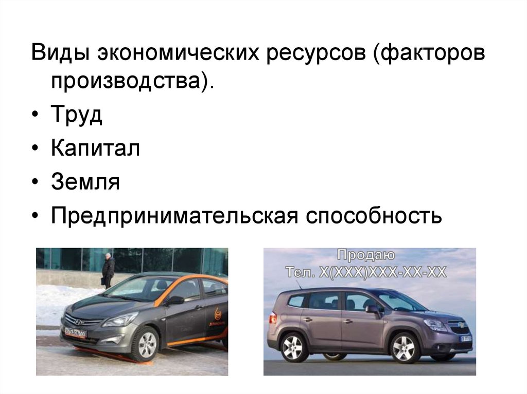 Виды экономических ресурсов (факторовпроизводства).