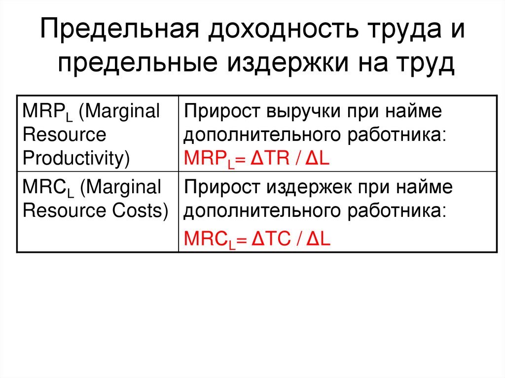 Предельная доходность труда ипредельные издержки на труд