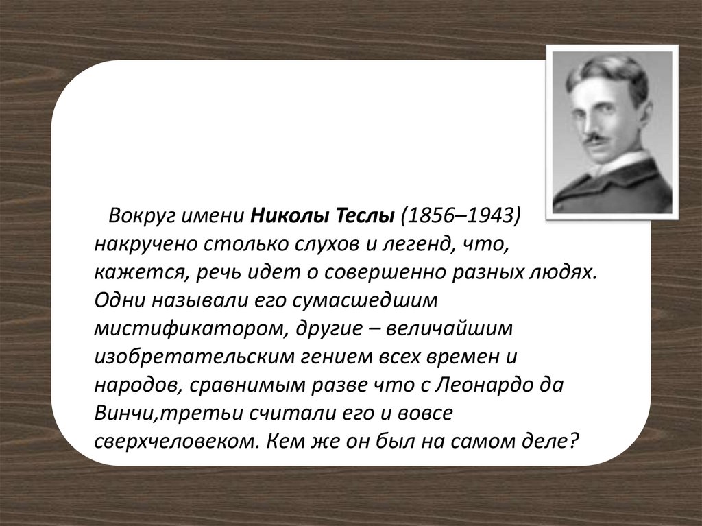 Вокруг имени Николы Теслы (1856–1943)накручено столько слухов и легенд, что,