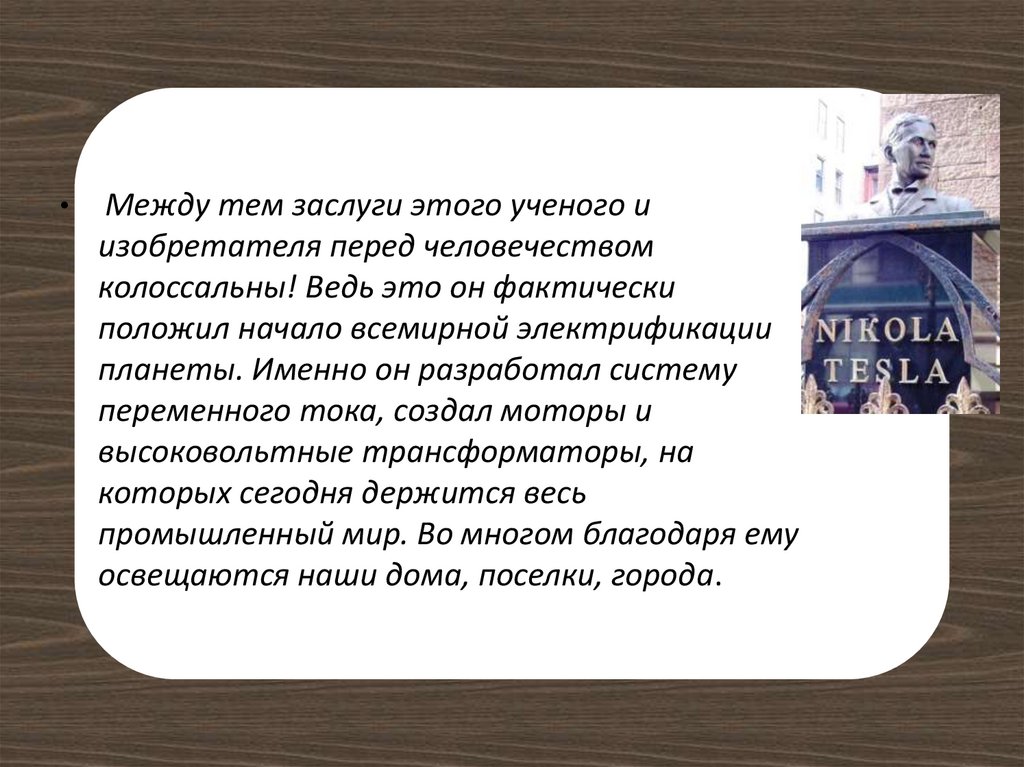 Позже Никола Тесла получил 60 000 за изобретение системы передачи и