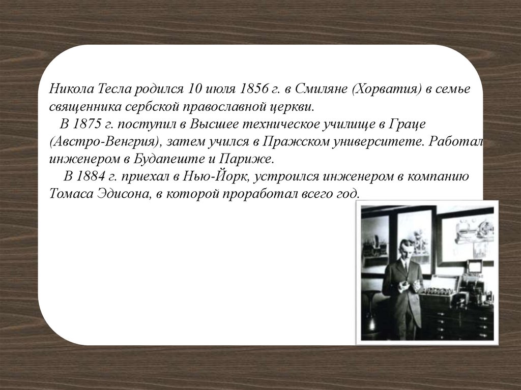 Никола Тесла родился 10 июля 1856 г. в Смиляне (Хорватия) в семьесвященника сербской православной церкви.