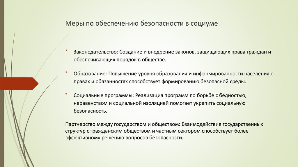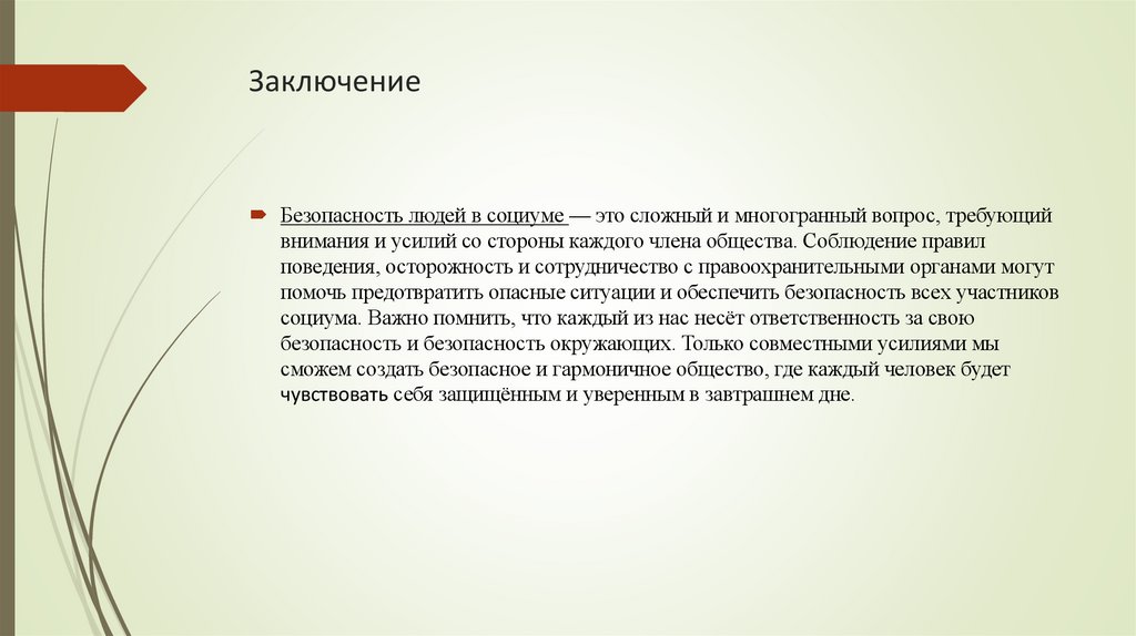 ЗаключениеБезопасность людей в социуме — это сложный и многогранный вопрос, требующий