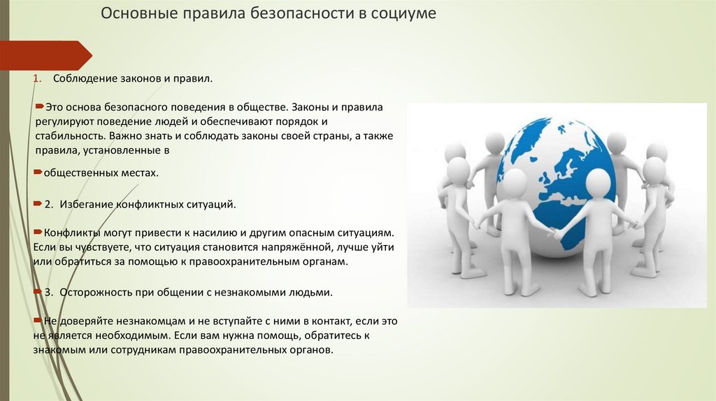Основные правила безопасности в социуме1. Соблюдение законов и правил.