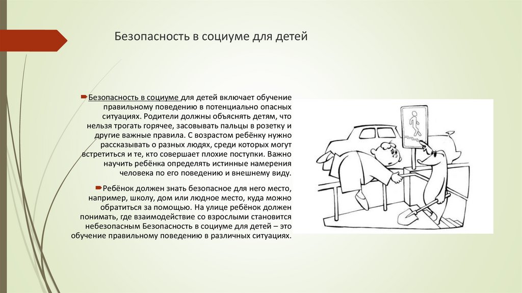 Безопасность в социуме для детейБезопасность в социуме для детей включает обучение