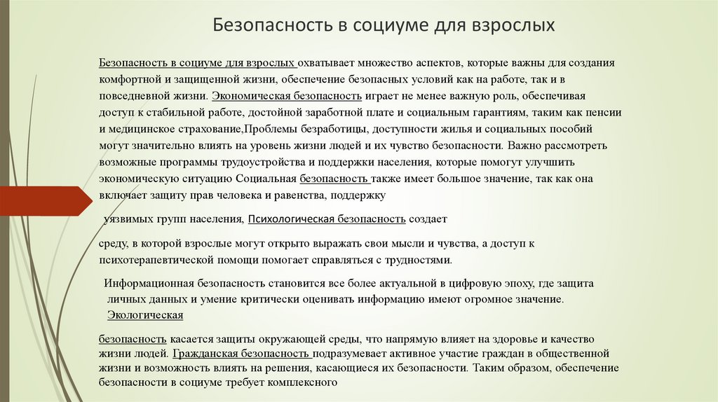 Безопасность в социуме для взрослыхБезопасность в социуме для взрослых охватывает множество аспектов, которые важны для создания