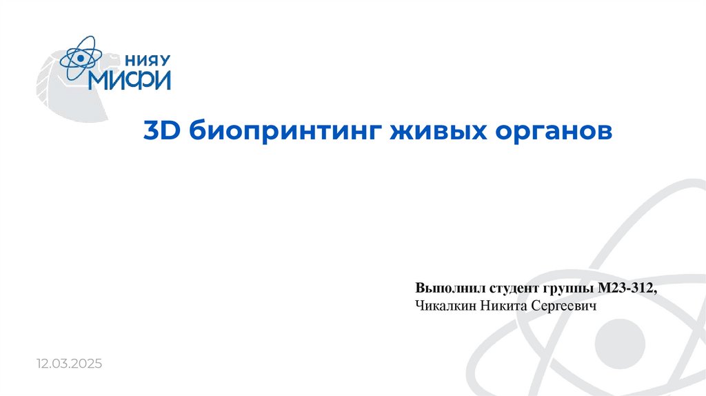 3D биопринтинг живых органовВыполнил студент группы М23-312,