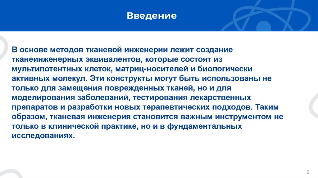 ВведениеВ основе методов тканевой инженерии лежит создание