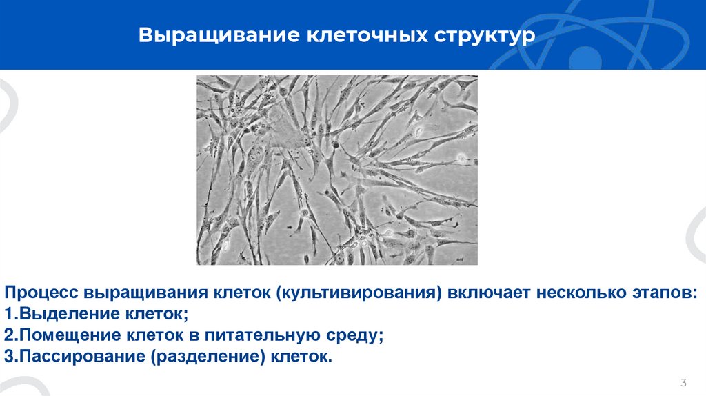 Выращивание клеточных структурПроцесс выращивания клеток (культивирования) включает несколько этапов: