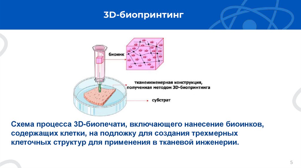 3D-биопринтингСхема процесса 3D-биопечати, включающего нанесение биоинков,