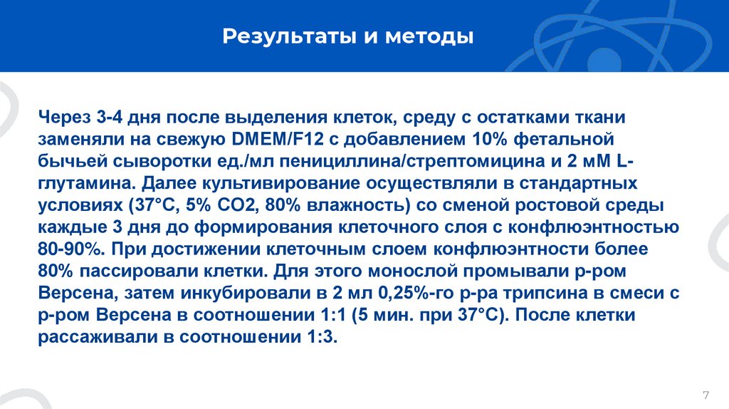 Результаты и методыЧерез 3-4 дня после выделения клеток, среду с остатками ткани