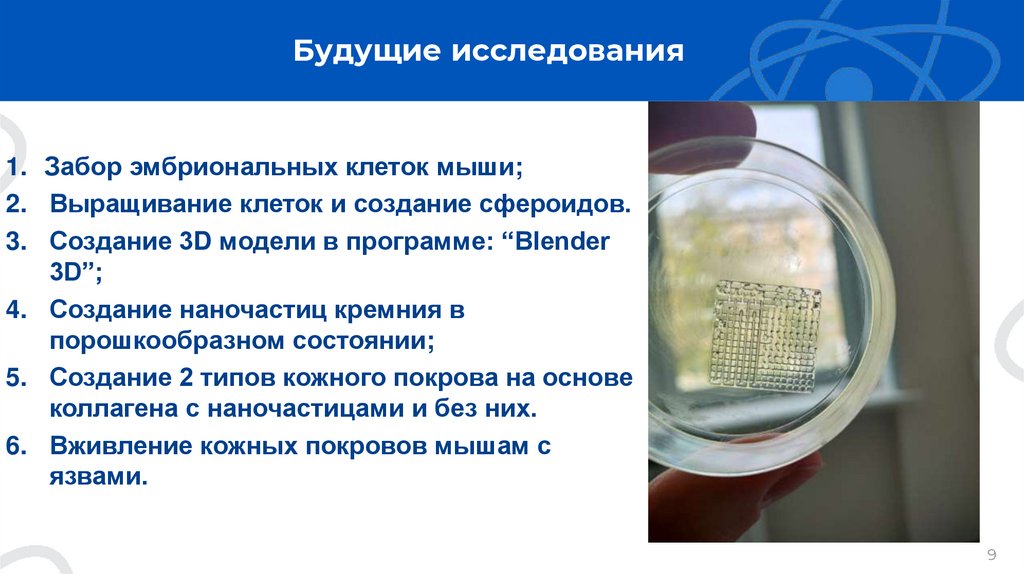 Будущие исследования1. Забор эмбриональных клеток мыши;