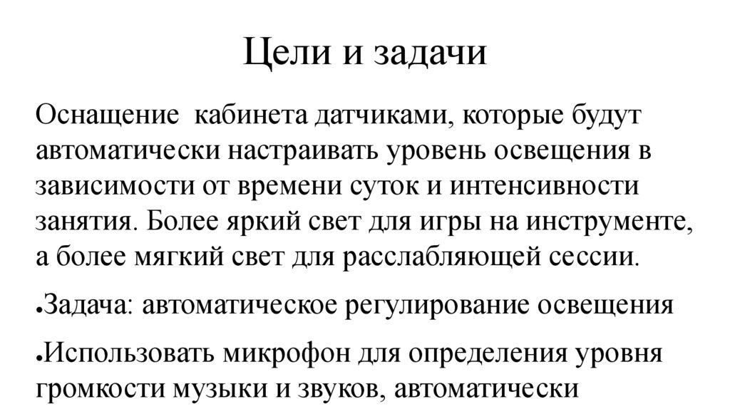 Цели и задачиОснащение кабинета датчиками, которые будут