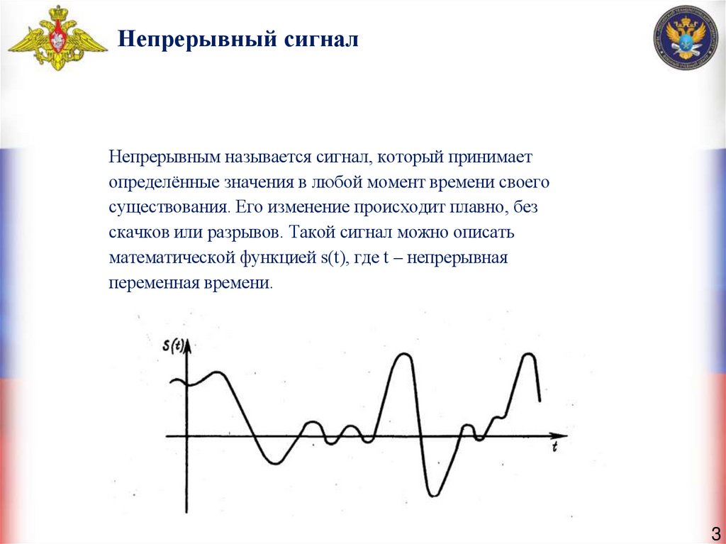 Непрерывный сигналНепрерывным называется сигнал, который принимает