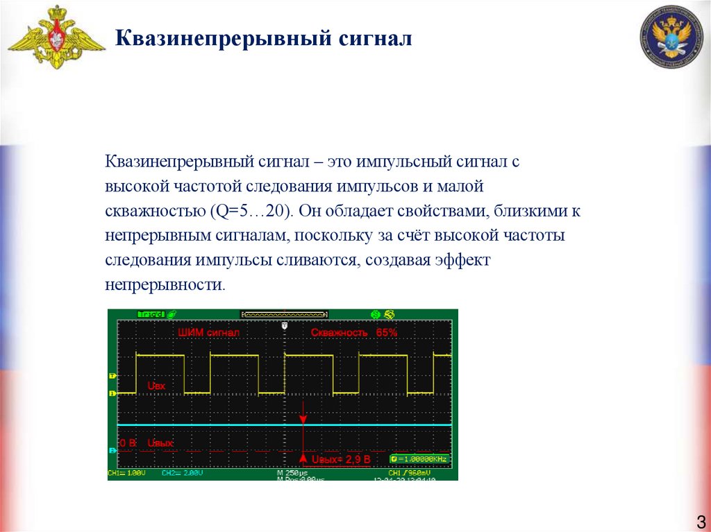 Квазинепрерывный сигналКвазинепрерывный сигнал – это импульсный сигнал с
