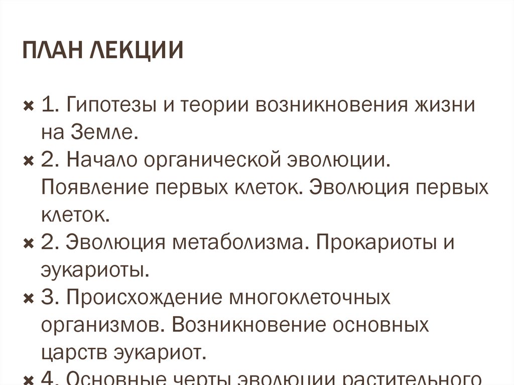 ПЛАН ЛЕКЦИИ1. Гипотезы и теории возникновения жизни