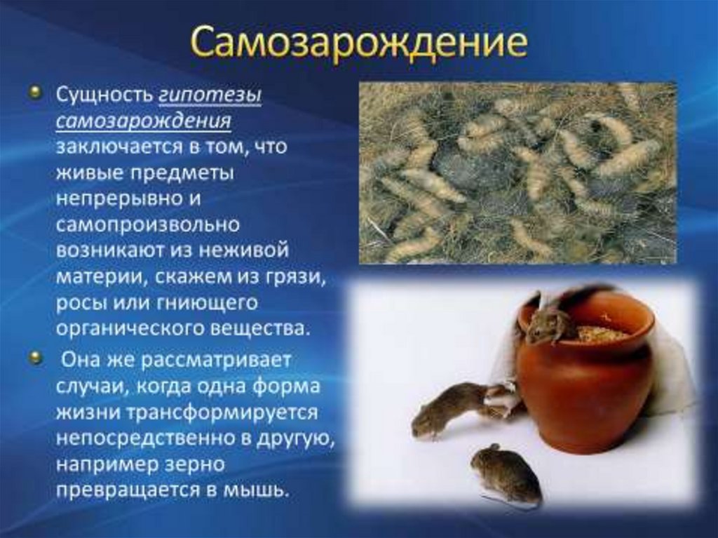 (включает в себя гипотезу самозарождения и