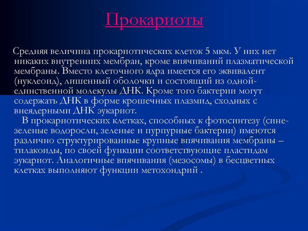 ПрокариотыСредняя величина прокариотических клеток 5 мкм. У них нет