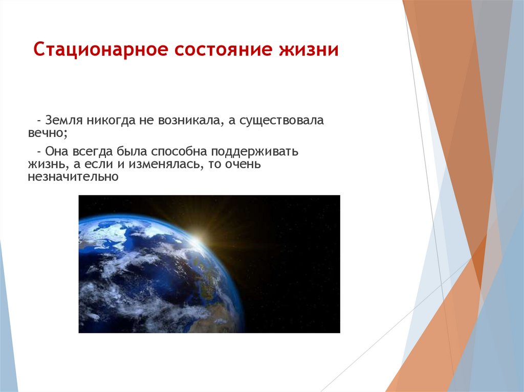 Стационарное состояние жизни- Земля никогда не возникала, а существовала