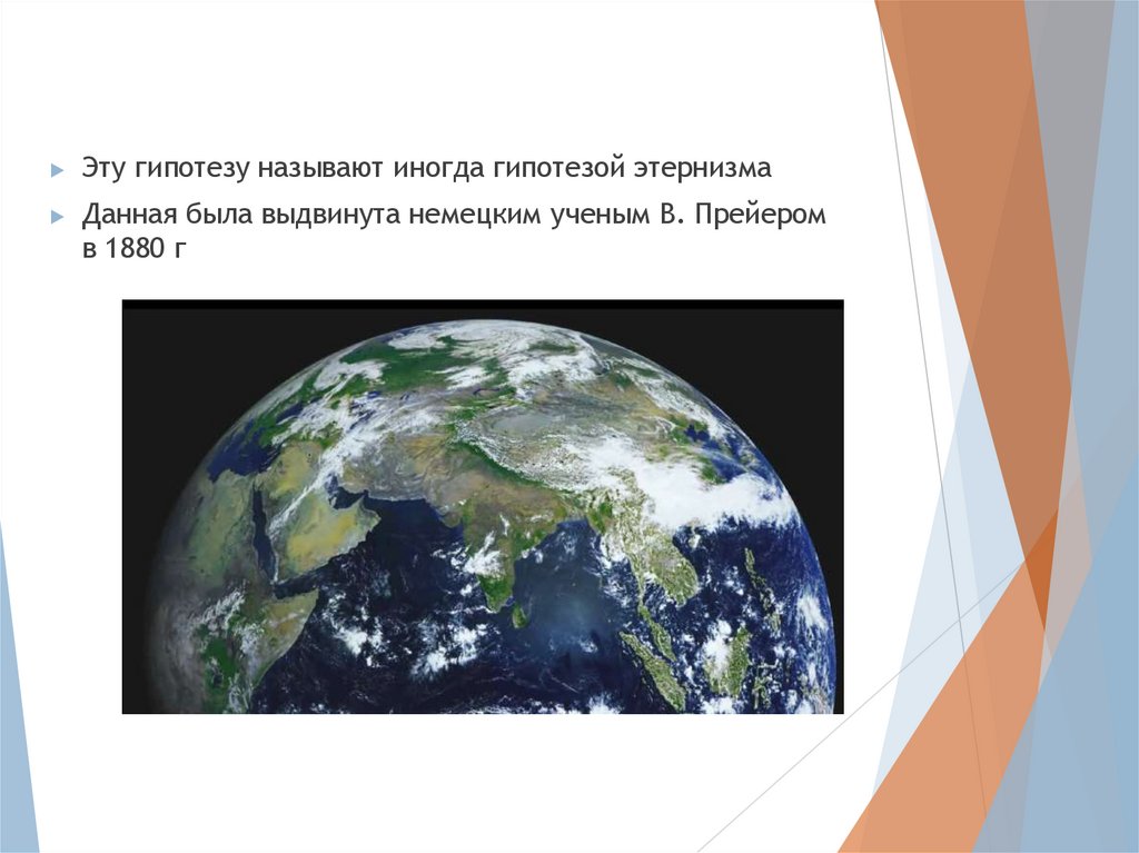 Эту гипотезу называют иногда гипотезой этернизмаДанная была выдвинута немецким ученым В. Прейером