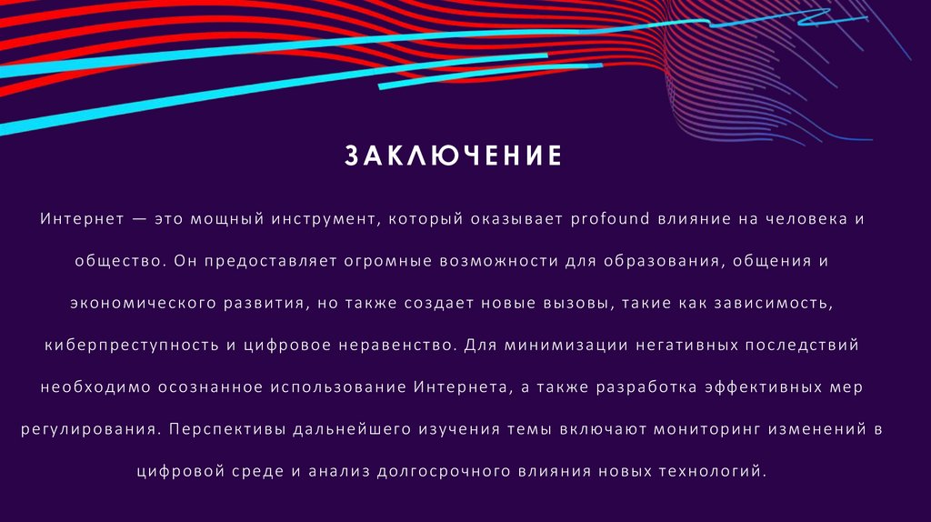 ЗАКЛЮЧЕНИЕИ н т е р н е т — э т о м о щ н ы й и н с т р у м е н т , к о т о р ы й о к а з ы в а е т p ro fo u n d в л и я н и е н а ч е л о в е к а и