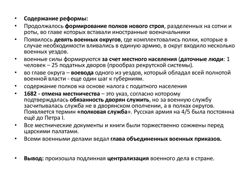 Появляется термин «полковая служба». Русская армия на 4/5 была постоянна