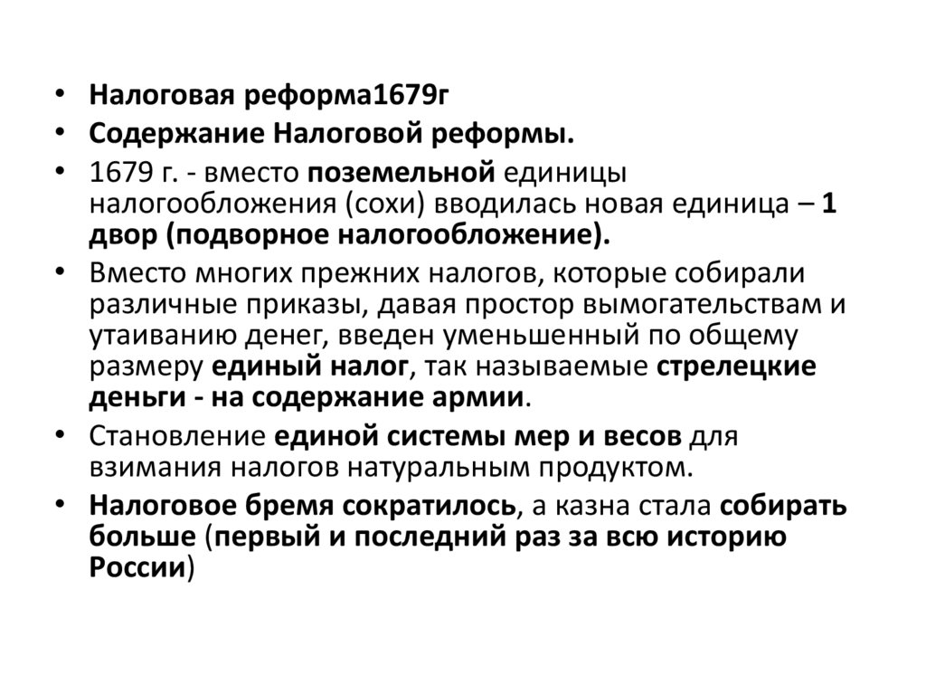 • Налоговая реформа1679г• Содержание Налоговой реформы.